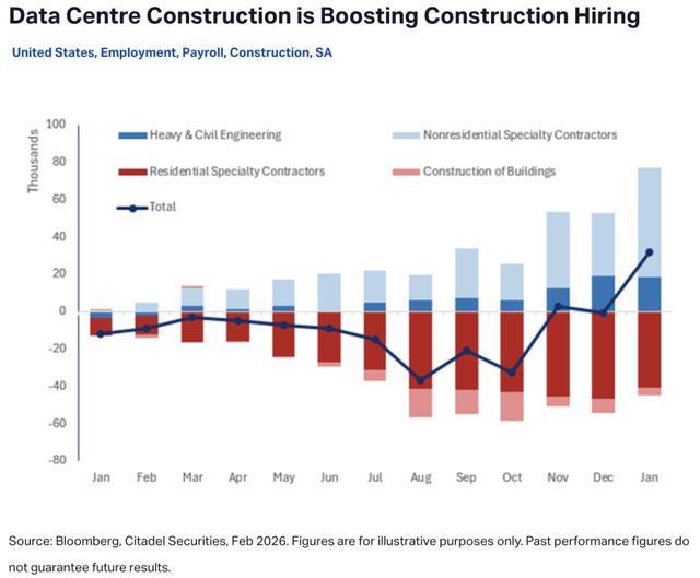 因为要建设那2800座数据中心,建筑业的招聘需求正在强劲回暖。